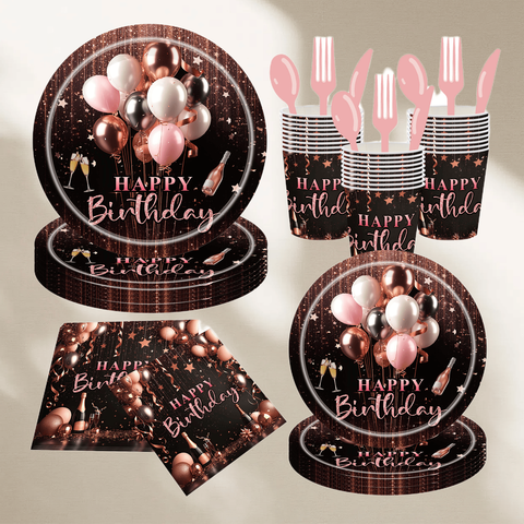 売れ筋ローズゴールドピンクパーティー用品使い捨てプレートナプキンセット女の子誕生日バルーン装飾バレンタインデーモダン